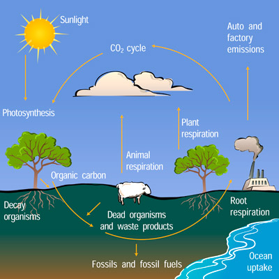 - Sources: When plants and animals die and decompose, CO₂ is released. Oceans release some CO₂ back to the air, and so do wildfires and volcanoes.