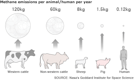 - Livestock farming for meat. Did you know methane is released from the digestive tracts of cattle, pigs, and sheep? (Fig 3.4.3)