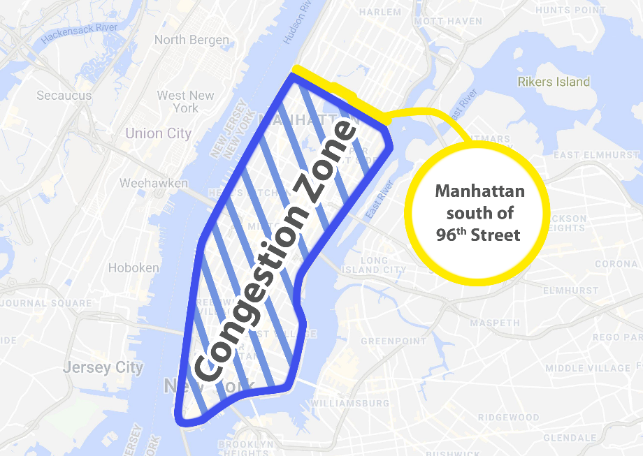 According to the new law, Most drivers are charged $9 to enter the area via an electronic toll collection system, called E-ZPass. Prices vary by type of vehicle, with emergency vehicles being exempt and low-income drivers getting reduced prices. Passengers using taxis and ride-sharing apps are also subjected to a surcharge.